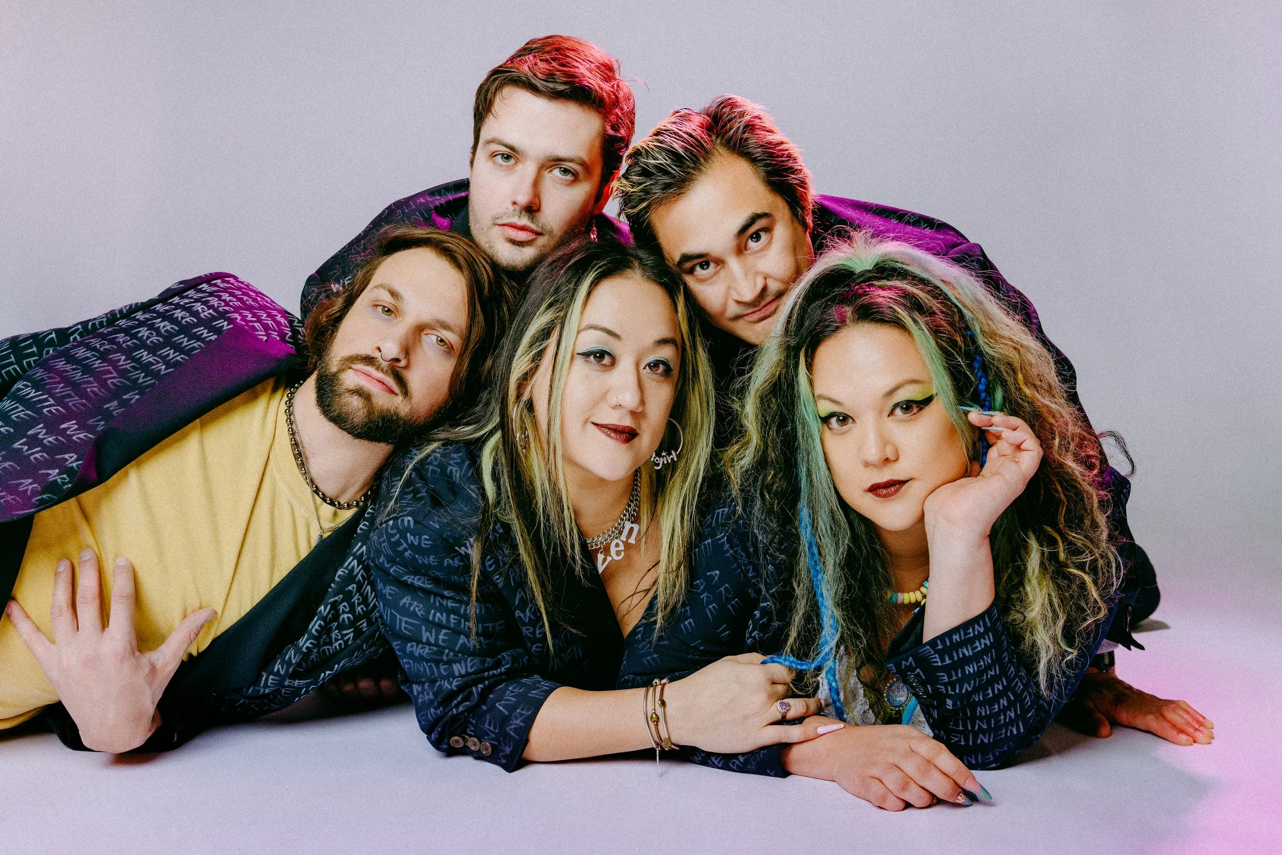 “We Are Infinite,” for instance, traveled quite a long way from its origins. One late night, mired in personal turmoil, Veronica found herself drug-addled and on the cusp of self-harm. She decided instead to open up her voice memo app and freestyle, spilling words about being exhausted and jaded with her surroundings, and yearning to return to the carefree limitlessness of her earlier self. The band took this raw material and worked it into a slinky, affecting track anchored by a switch between the minor-key verse and a major-key chorus, reflecting the shift between a turbulent present and a placid past.